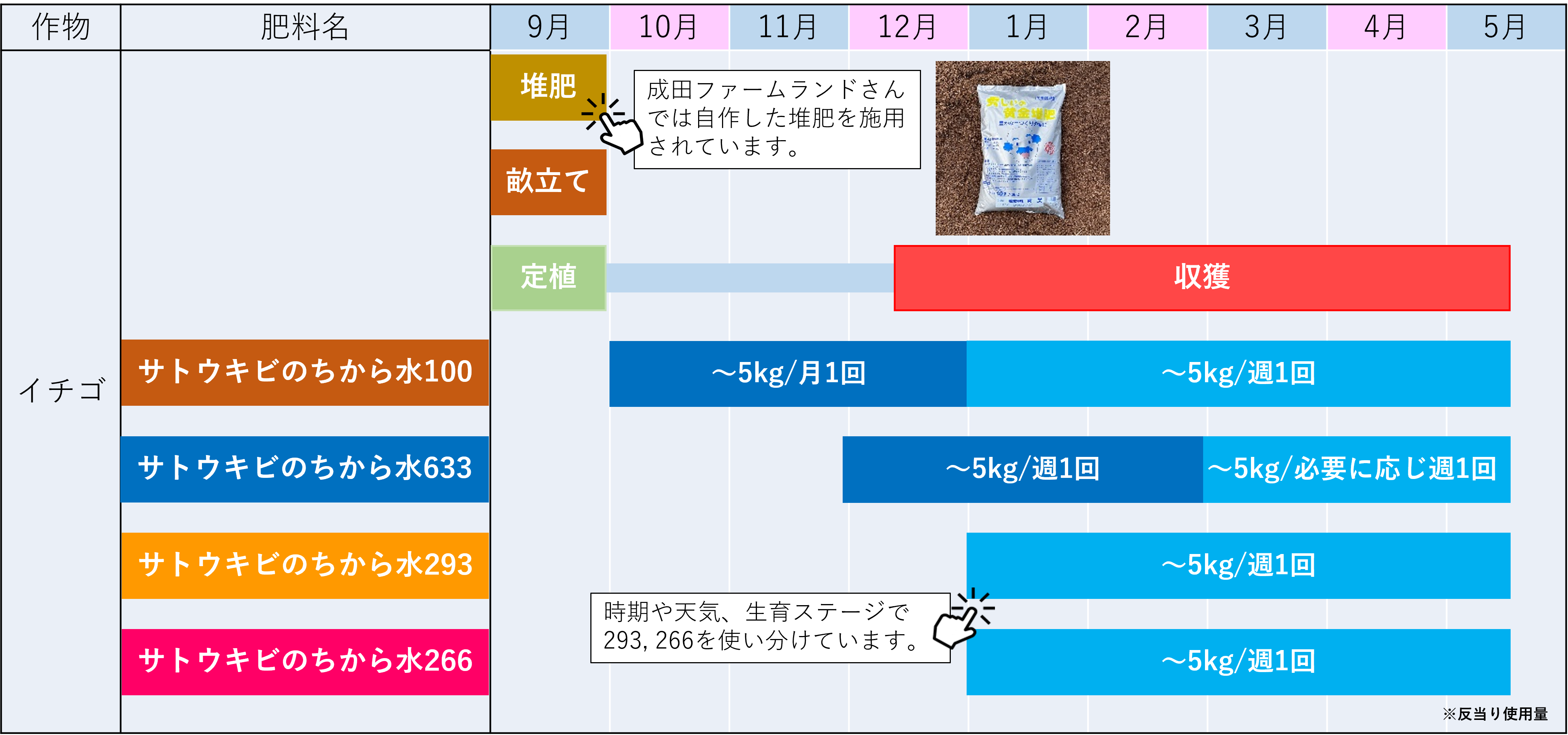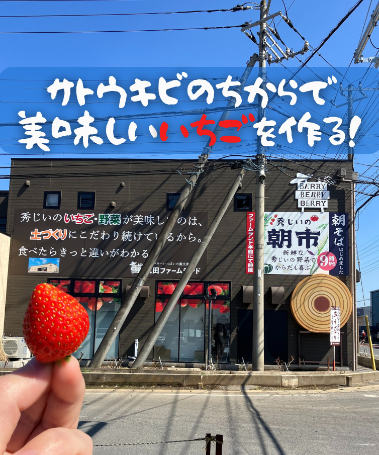 そんな成田ファームランドさんは、主な追肥でサトウキビのちから水を使っており、液肥を流すとはっきり分かるほどいちごが甘くなるそうです。
