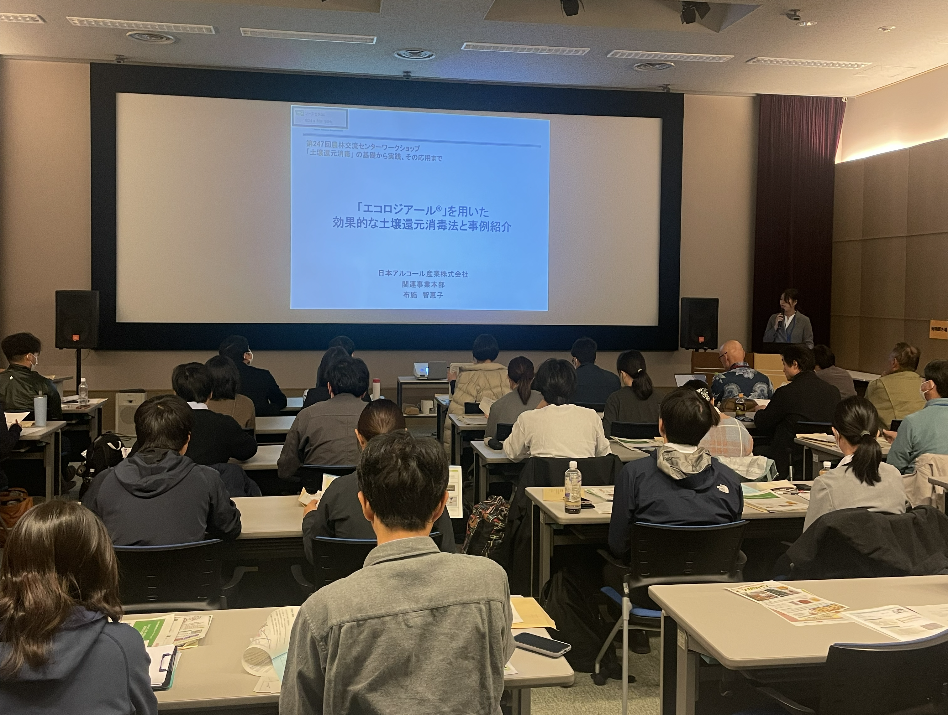 弊社は、そのプログラムの一部である技術紹介にて「エコロジアール🄬を用いた効果的な土壌還元消毒法と事例紹介」を発表しました。