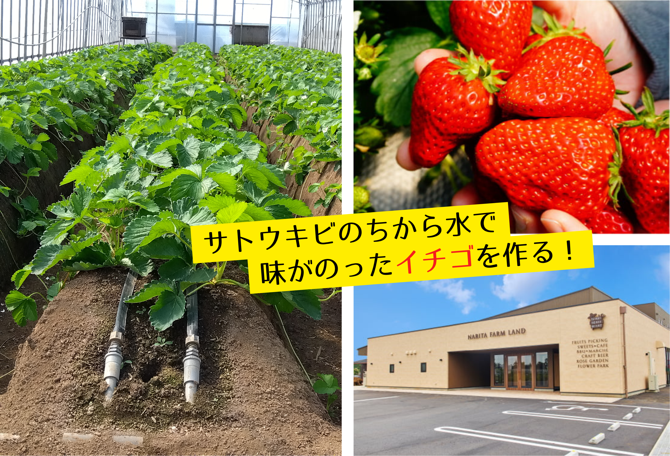 そんな成田ファームランドさんは、主な追肥でサトウキビのちから水を使っており、液肥を流すとはっきり分かるほどいちごが甘くなるそうです。